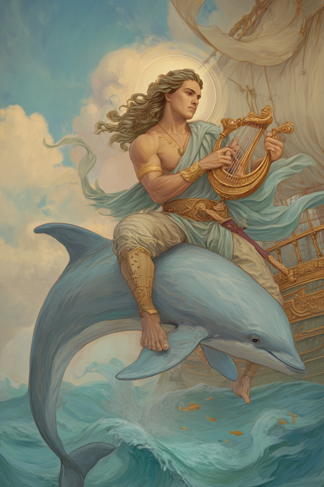 In the age when the sea still listened, there lived a musician named Arion of Lesbos. He was a traveler of ports and courts, whose lyre could still the quarrels of kings and draw seabirds to silence. Wherever he journeyed, his song was his passage — a gift in one harbor, a welcome in the next. Yet even the most gifted are not beyond envy or greed.