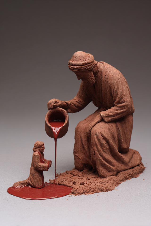But mortals could not be shaped from clay alone. To give them spirit, a god must be sacrificed. They chose Geshtu-e, whose blood was mingled with clay. From this mixture, Mami formed the first humans, fragile yet cunning, servants of the gods.