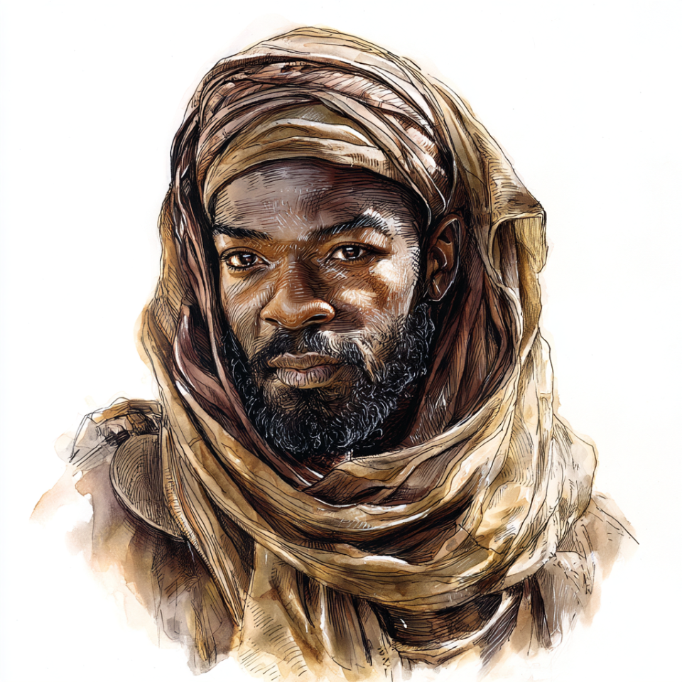 Bilal was born of Ethiopian heritage. Enslaved in his youth, he endured great hardship until freed through the efforts of Abu Bakr. His dignity, faith, and resilience made him one of Muhammad’s most trusted companions.