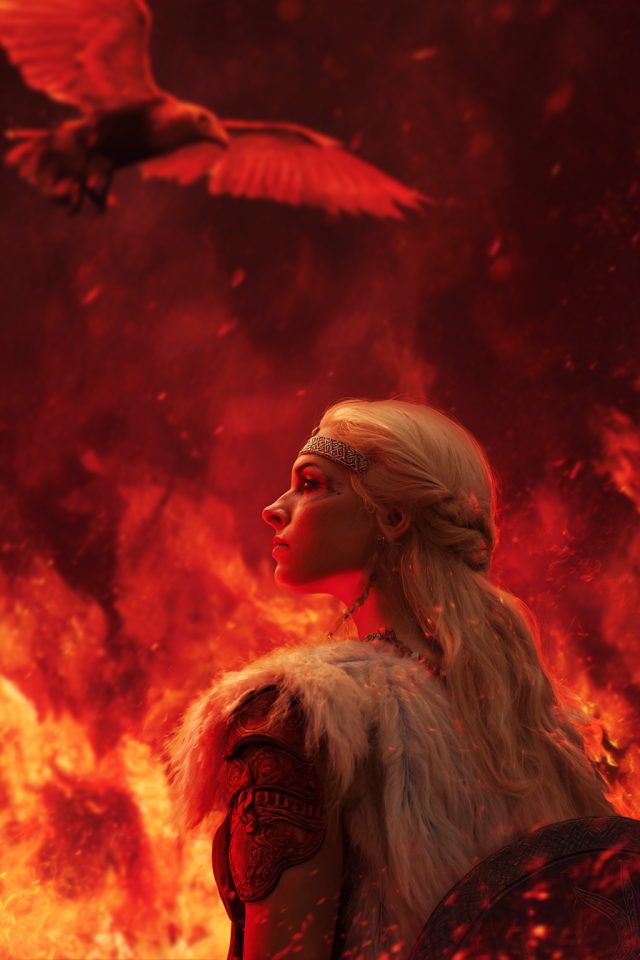 But Brynhild was not forgotten. When Gunnar, Gudrun’s brother, sought her hand, it was Sigurd who alone could pass the fire once more. Using guile and disguise, Sigurd crossed the flames again, but in Gunnar’s form. Thus Brynhild was deceived into marriage, though her soul sensed betrayal.