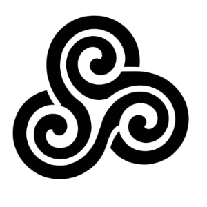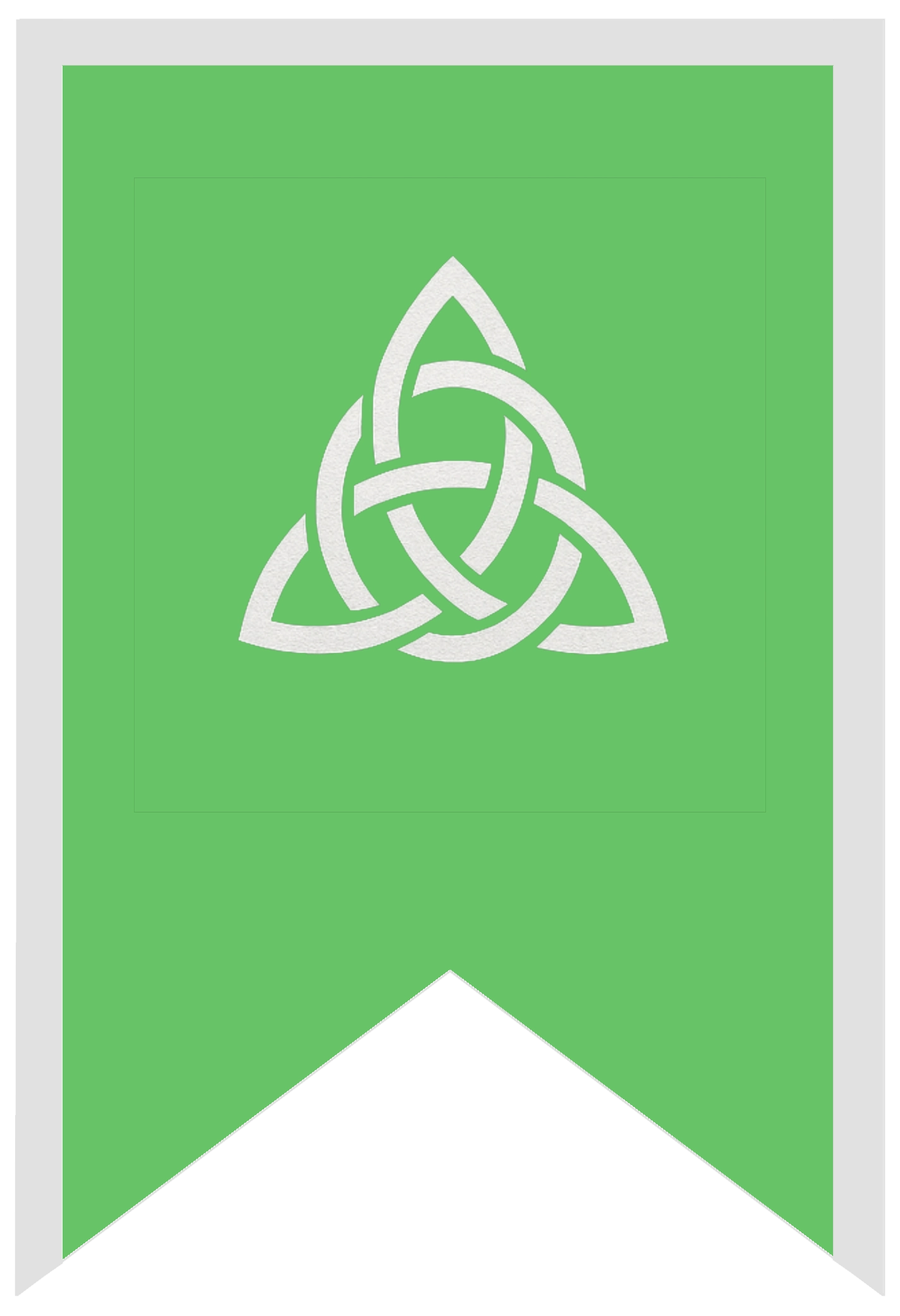 Green for sacred groves, silver for lunar/metal symbolism, knot for continuity.