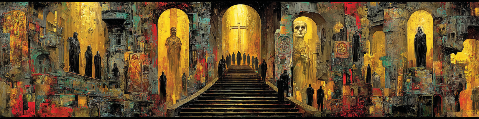 Integral to Crowley’s wider Terran Universe is the mythological system known as the Terran Pantheon, first introduced in The Iron Gospel (2023) and later expanded through subsequent novels and posthumous works. The pantheon’s deities embody virtues corrupted by civic-religion, each representing an aspect of social order transformed into a mechanism of control. Crowley treated these figures not as religious entities but as metaphors for the moral compromises inherent in empire.