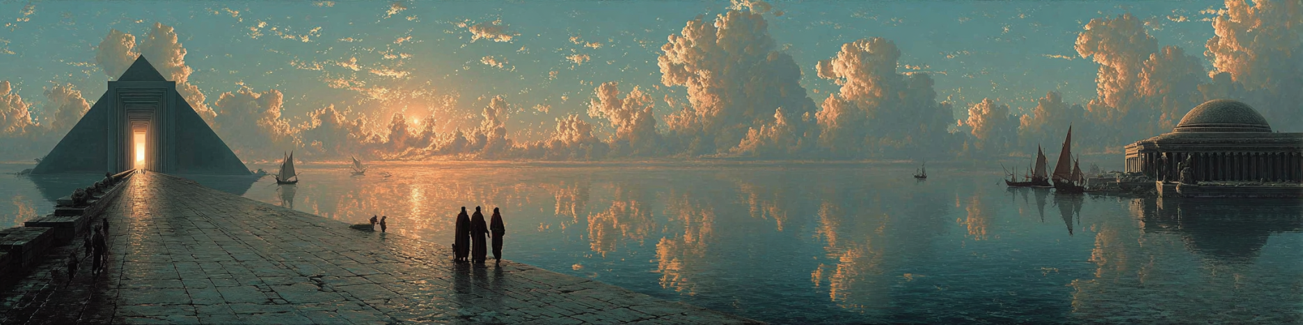 The southern Aegean and Anatolian coast form one of Koina’s great syncretic corridors — where Hellenic reason met Persian tolerance and Egyptian geometry. Temples, tombs, and colossi stand along this shore like milestones in humanity’s dialogue with divinity and mortality. The Sacred Coast endures as a living museum of proportion, where marble and light still argue — gently — about perfection.