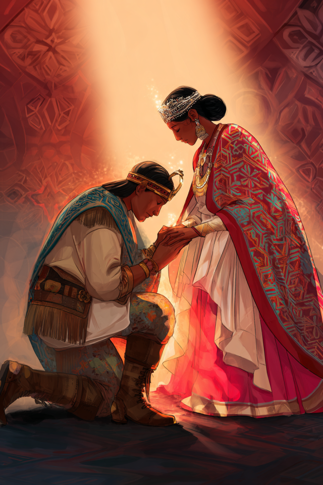 They met in secret among gardens where fountains whispered, exchanging vows of devotion. To each other they swore love stronger than the stones of Sacsayhuamán, believing that surely the gods of sun and earth smiled upon them. But when Ollantay dared ask Pachacuti for her hand, the emperor’s wrath was swift. “A man of common blood shall never wed a princess of the sun,” he declared.