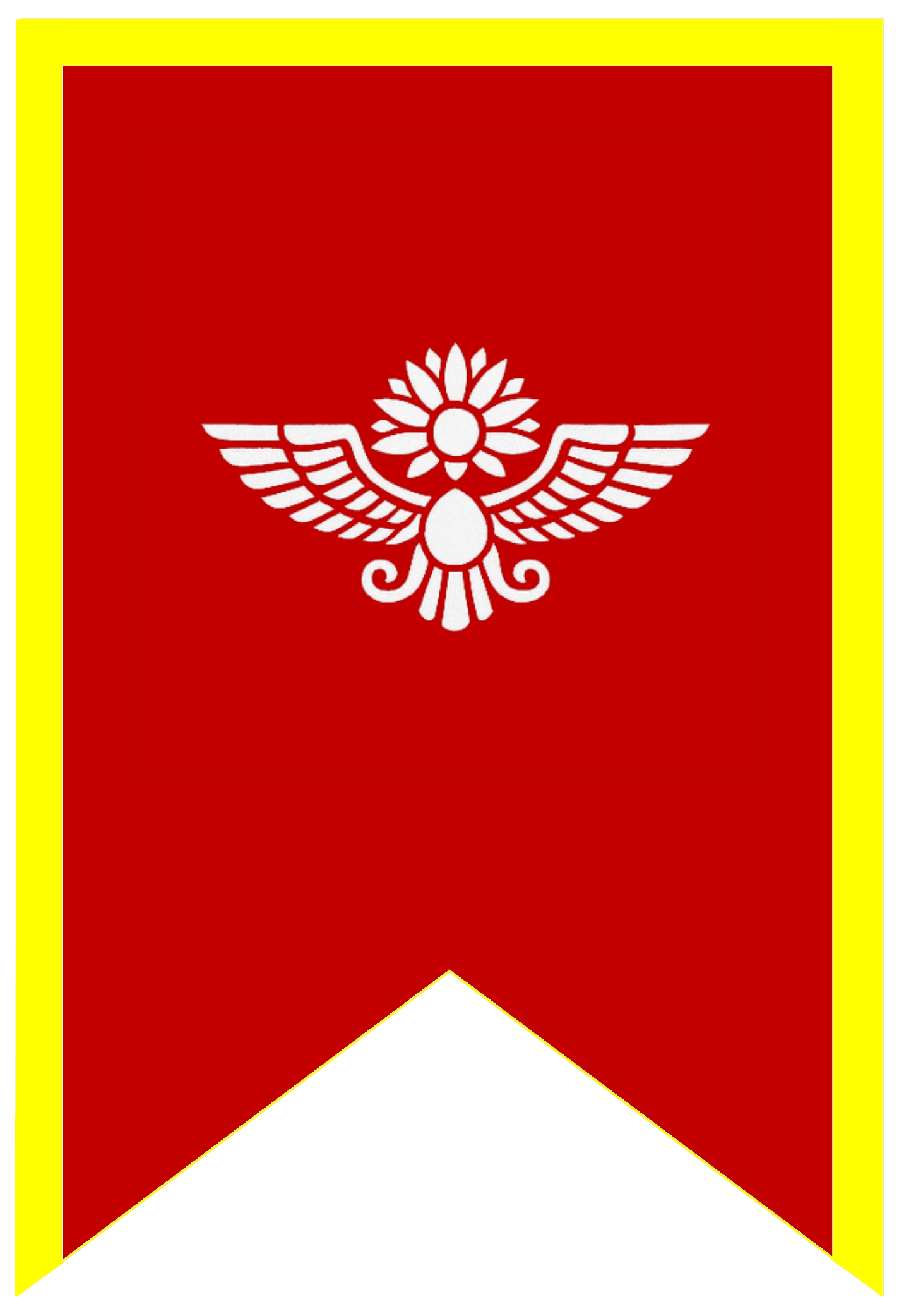 Crimson for royal authority, gold for wealth/power, winged sun as Zoroastrian/imperial symbol.