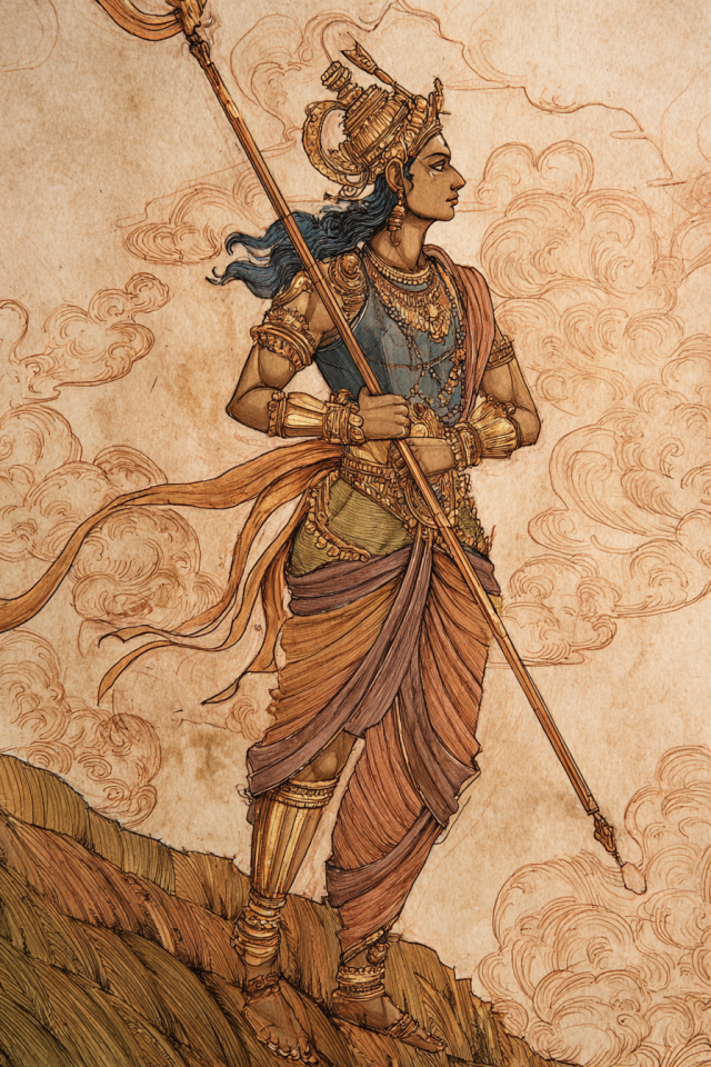 When the Kurukshetra war broke out, Shikhandi rode among the warriors of the Pandavas. Bhishma, mighty and terrible in battle, laid waste to all who opposed him. But prophecy had long declared that Bhishma would fall only before the hand of a woman — and though Shikhandi now bore the form of a man, Bhishma still saw the shadow of Amba in them.