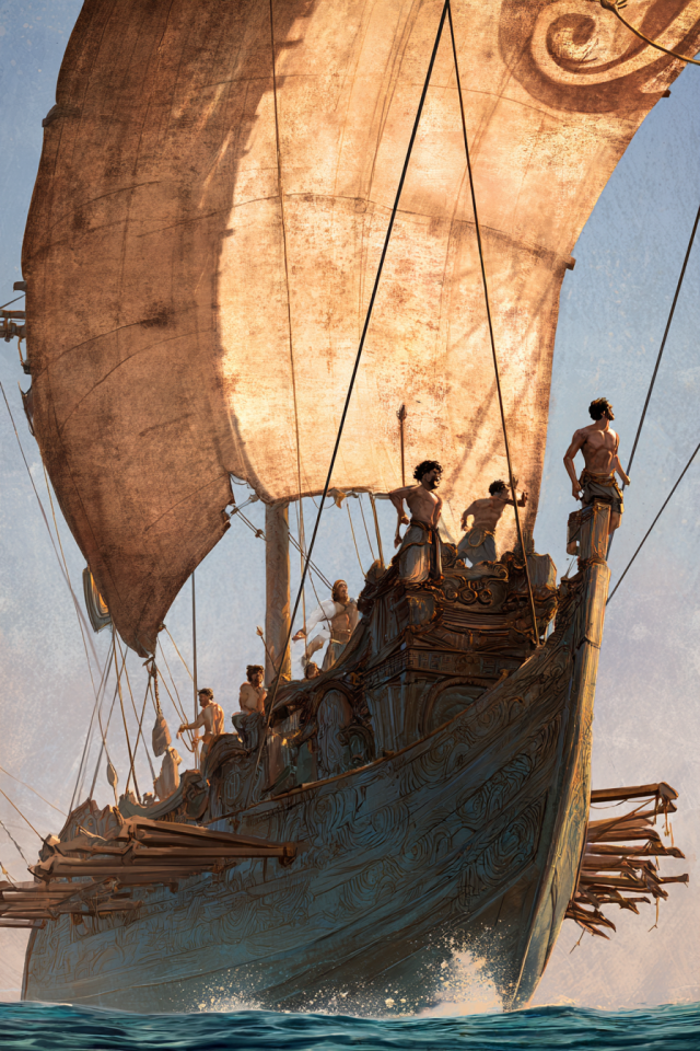 In Iolcus there lived Pelias, who had usurped the throne from his own kin. But prophecy had warned him: beware the man who comes with but one sandal. In time Jason, son of the rightful king Aeson, returned from his hidden upbringing. Crossing a river, he lost a sandal, and so came into the court as foretold. Pelias, wary of the omen, feigned welcome and set Jason a task he thought impossible: to bring back the Golden Fleece from far Colchis, at the edge of the world.