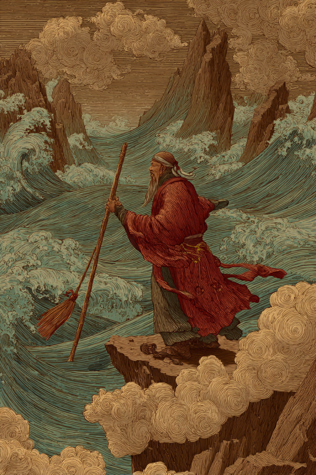 So tireless was his labor that he passed his own home three times without entering, though his wife and child stood at the door. “Not until the waters are tamed,” he said, “may I rest in my house.” His body grew gaunt, his hands calloused, but still he pressed on, leading the people in carving canals and building dikes where needed, always letting the waters move freely rather than damming them in anger.
