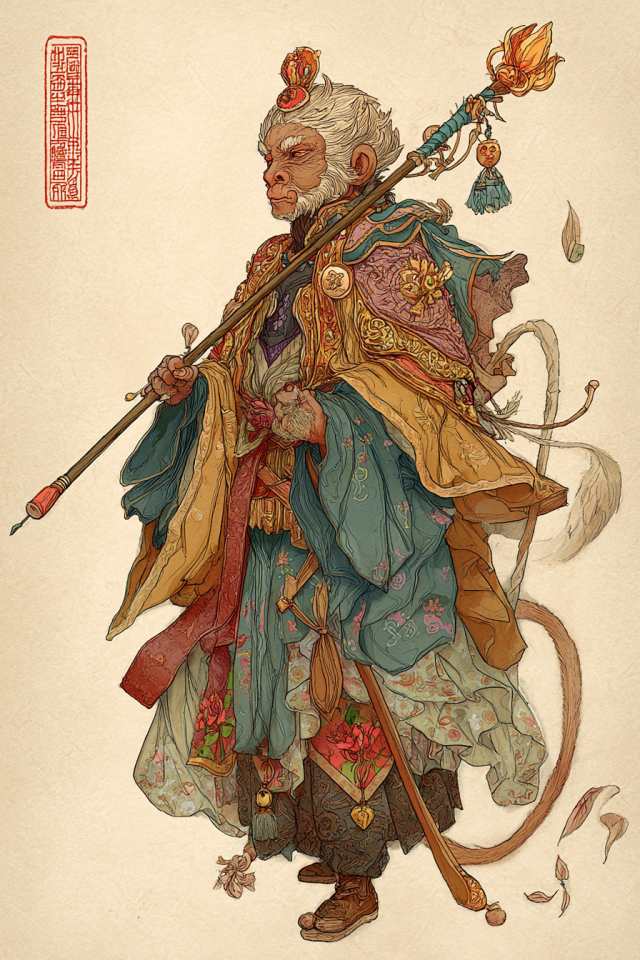 He had no ready answer. The silence between them was not empty; it was a field at night, crickets working, dew forming, the slow labor of living. Wukong was already there, though neither had seen him come—disguised as a garden guard, eyes bright as a star seen out of the corner of one’s eye. He recognized the shape of the Queen’s question. He recognized the shape of Tripitaka’s heart before the monk did.