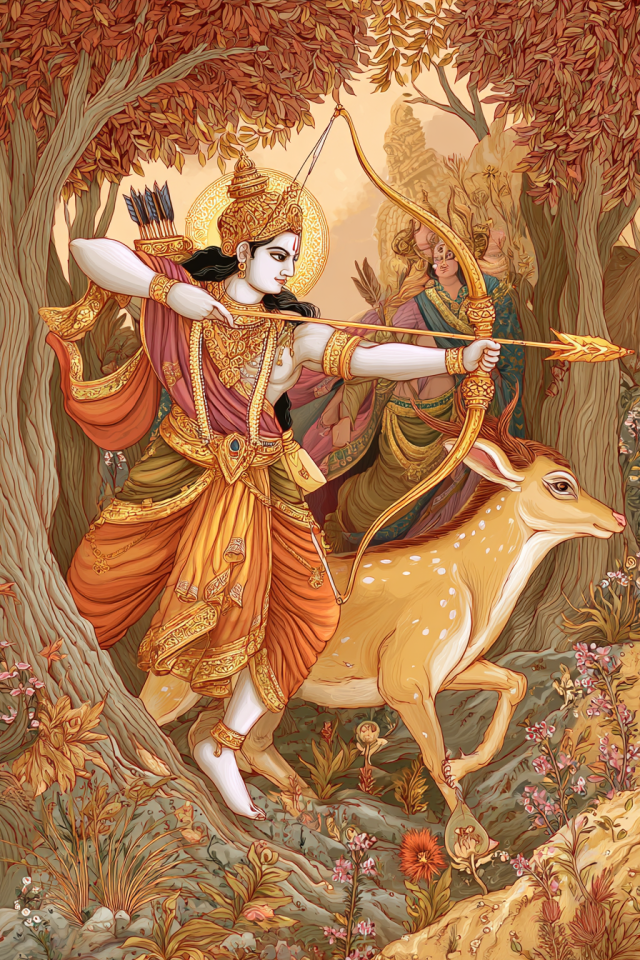 For years they dwelt in hermitages, wandering from forest to forest, welcomed by sages, feared by demons. Rama slew rakshasas who threatened the ascetics, and his fame spread across the land. Sita endured hardship with quiet grace, and Lakshmana kept constant watch. In these years the exile seemed almost a pilgrimage, but fate had greater trials in store.