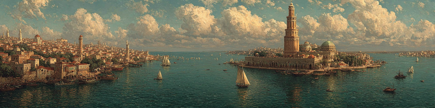 Where the Nile meets the sea and desert, three sanctuaries mark the boundary between worlds — lighthouse, mountain, and oasis. Each is a dialogue between navigation and revelation, guiding both travelers and souls. Together they form the western threshold of the ancient world’s moral geography.