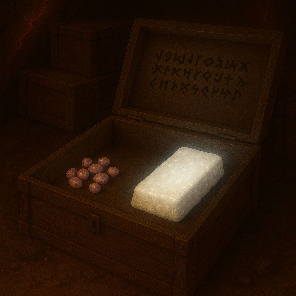 Spellicite forms as naturally round, white pebbles that contain an iridescent shimmer and are partially translucent, often containing structures inside that resemble runes. The structures inside emit a faint glow even in pitch black hinting to the latent magic embedded within the material. Has a magical conductivity rating of 10 out of 10.