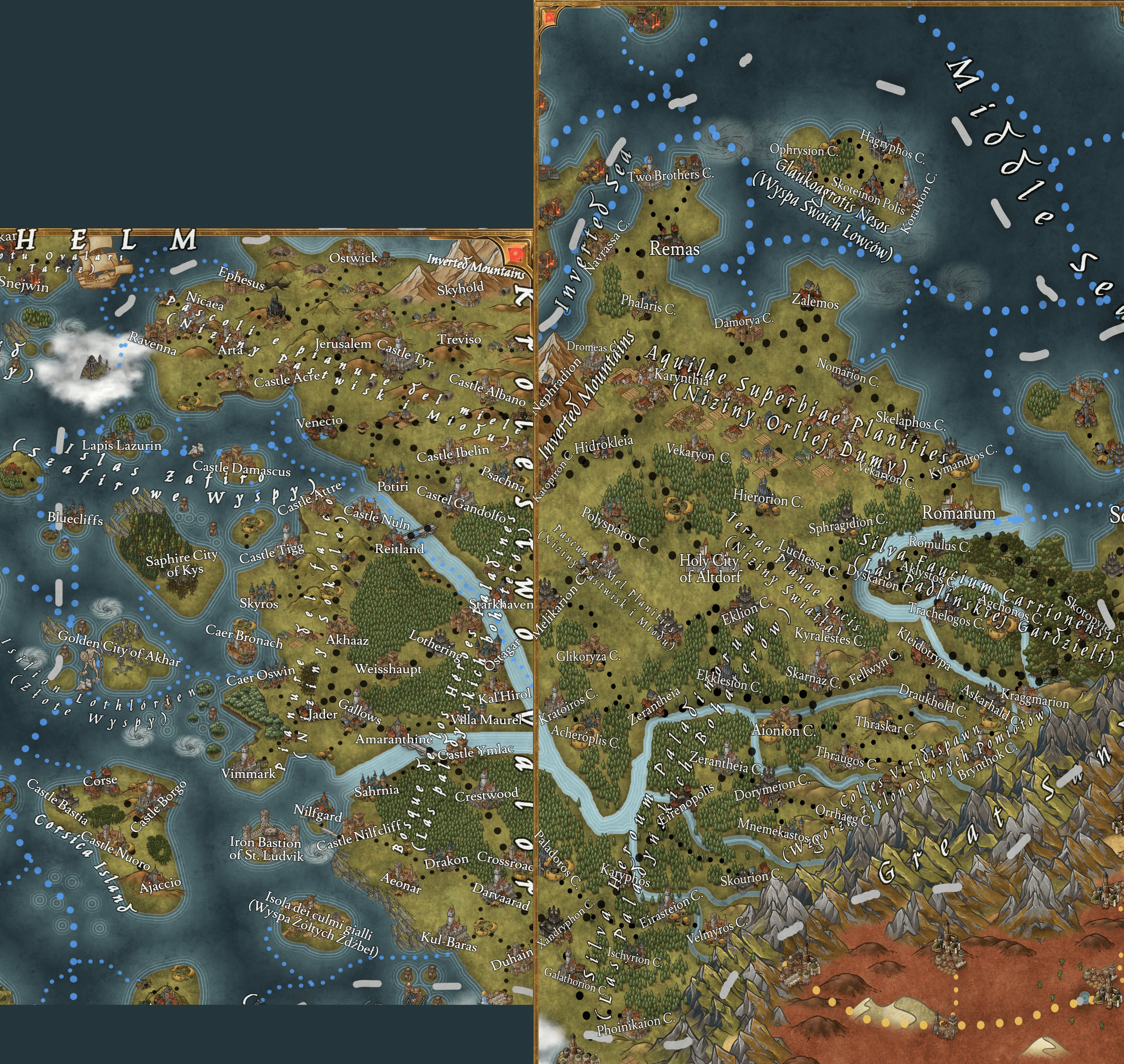 W tym celu stawili pierwsze warownie, których ruiny na zawsze będą przypomnieniem dla rdzennych mieszkańców o zagrożeniu konfliktów. Pierwsze miasta regionu jak Nilfgard, Veneci czy Remas zostały założone przez Kravińczyków, którzy zamiast tępić regionalne ludy próbowali ich rozwinąć i włączyć w swoje kolonie. Głównym celem osad było zabezpieczenie szlaków handlowych między Kravią, a północną Terrą.