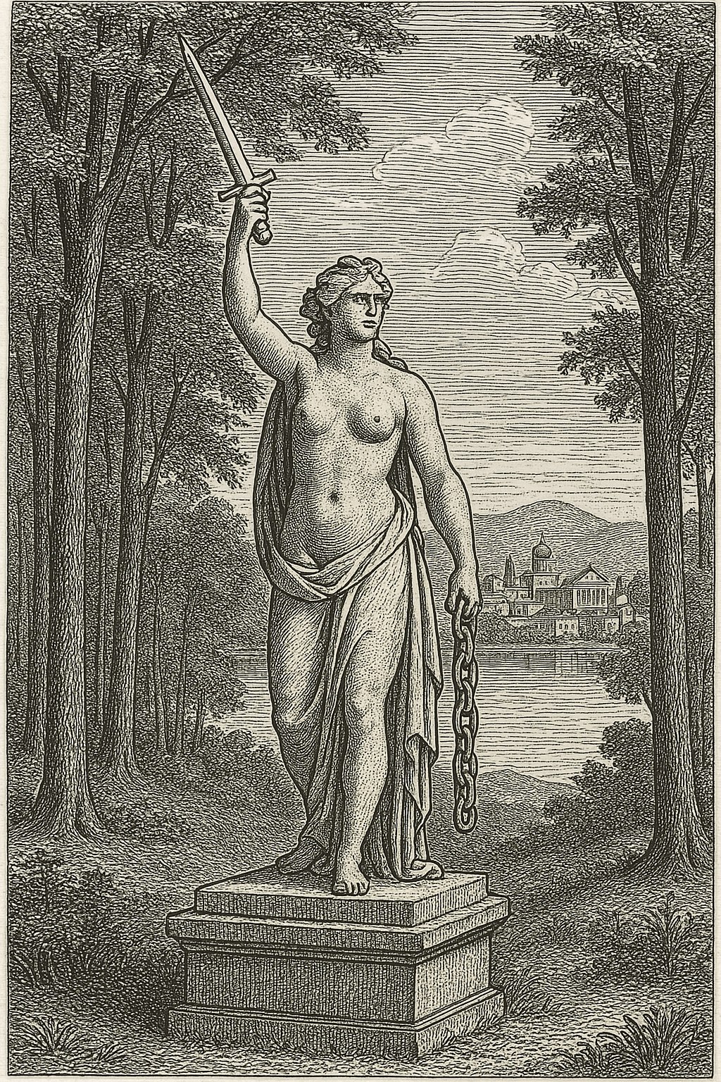 - The Statue of Tola Eppovia Qulia Ativia: This marble statue was erected quickly after Eppova suppressed Her̂idia Dacciia. It features her, in heroic semi-nudity, wielding a sword over her head in one hand and holding a chain in the other. It is erected on the site within the once sacred Grove of Bermedicus on the lakeshore, where Eppova personally executed Atwabeia Appelcima Sicca Pala.