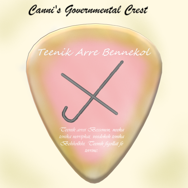 This crest was designed in 1962 by Wells descendant Annaha Been, the daughter of Infrastructure Manager Kenno Been. In 1960, Kenia, the country Canni is under, made their official language Jener.