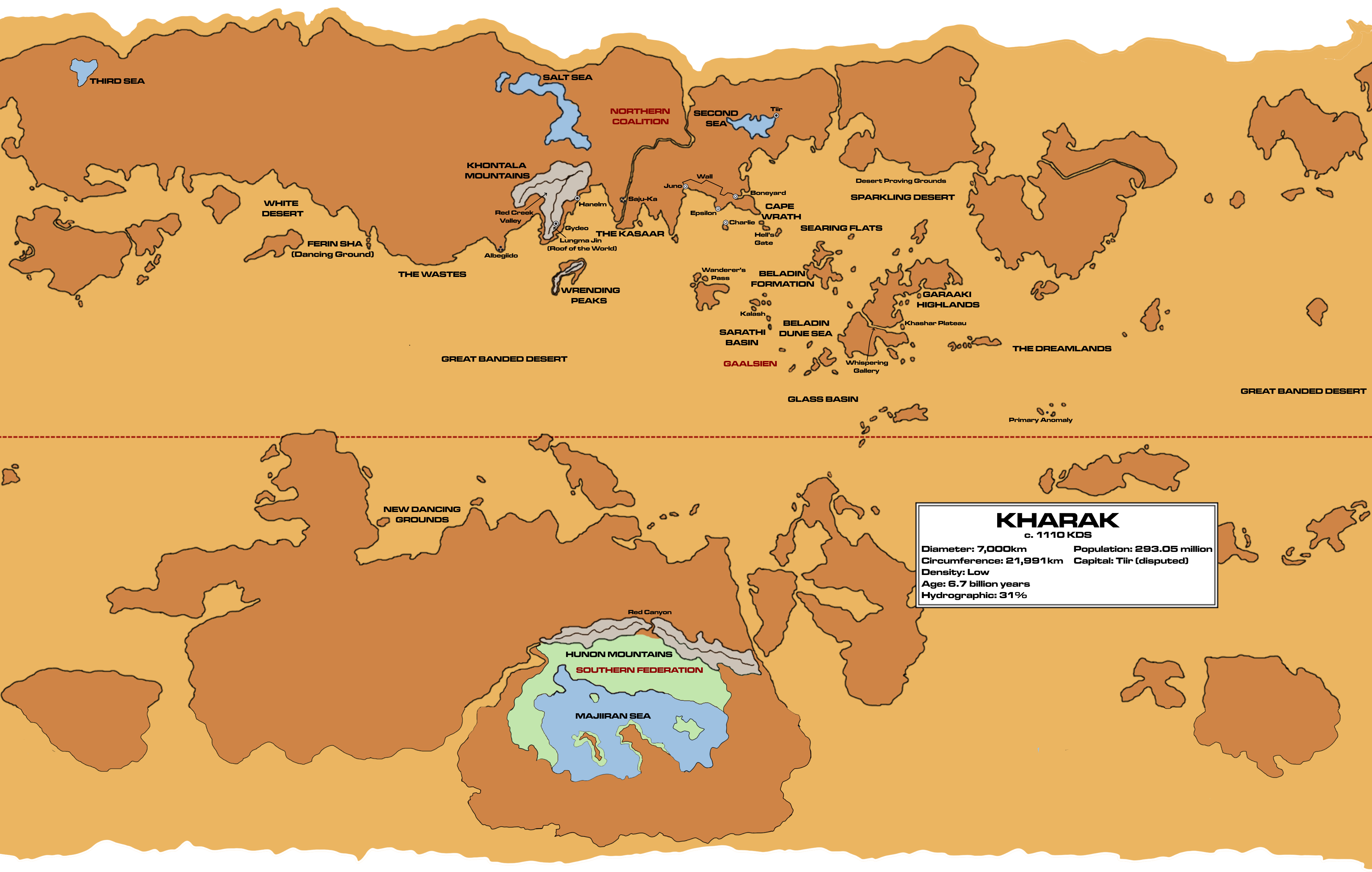 Il existe des récits anciens racontant que des Kiithid entiers ont été anéantis en tentant de migrer à travers cette région, et même les Gaalsiens et les Manaani, experts du désert, traitent ces régions avec le respect qu’elles méritent, et ne les traversent que pour des affaires vitales.