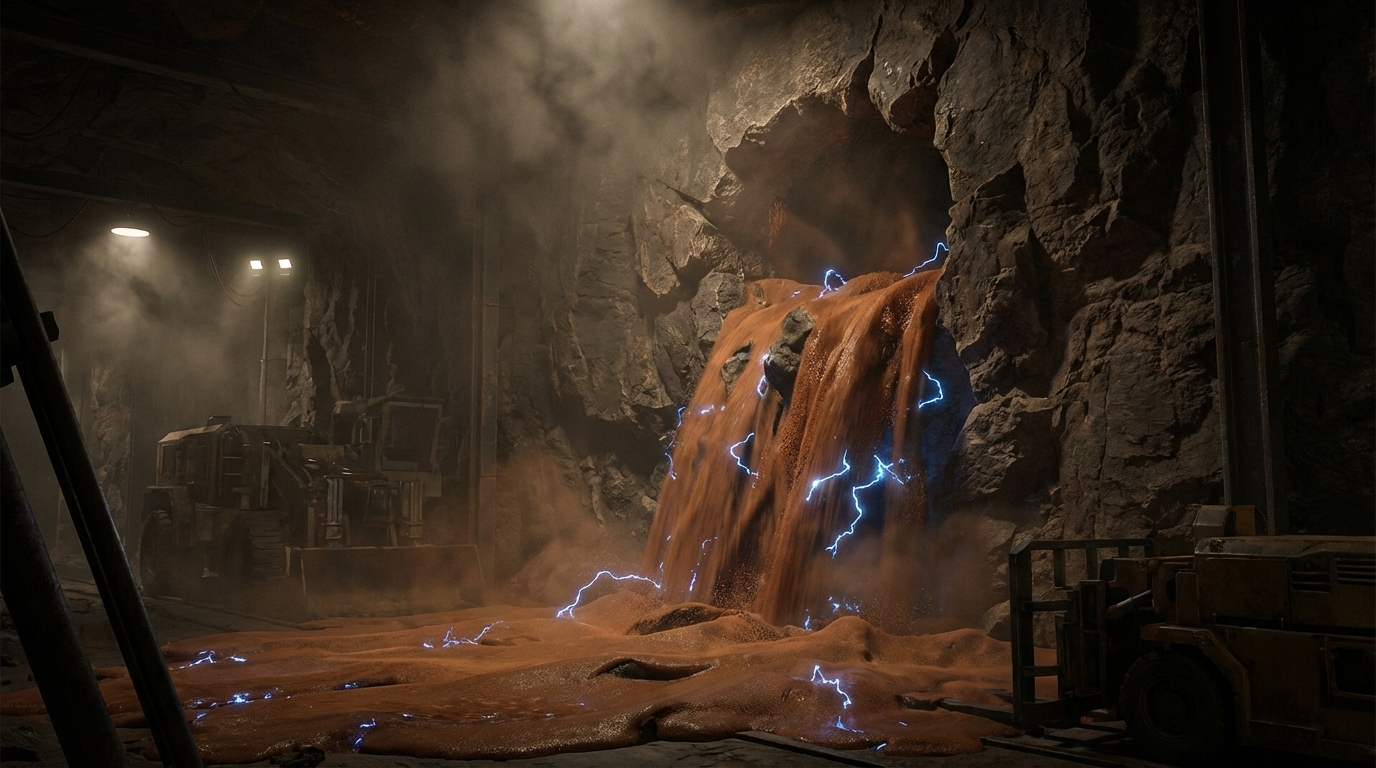 En surface, la friction entre les grains assure une stabilité mécanique. Les structures peuvent s'y ancrer, les véhicules y circuler. Mais en profondeur, sous pression lithostatique, les charges électriques des grains se repoussent mutuellement. Le sable subit alors une liquéfaction, se comportant comme un fluide dense et visqueux.