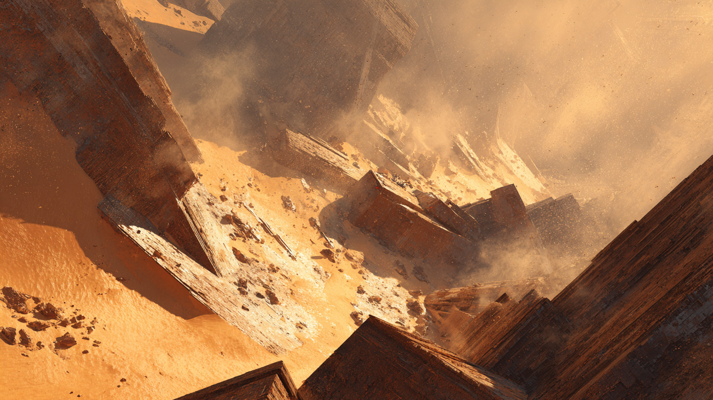 Les vents thermiques propulsent le ferro-silicate contre les massifs rocheux. Sa dureté cristalline lui permet de pulvériser la roche plutôt que de simplement l'éroder.