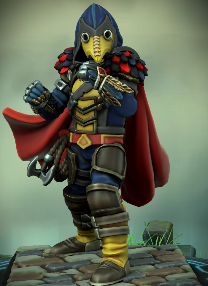 The Nighthawk's face is covered by a hooded mask of a bird of prey, dyed yellow to resemble a beak. The eye holes are protected by glass that some thieves whisper are magical, permitting the vigilante to see in clearly even in the darkest of places, perhaps even seeing things made invisible by magic.