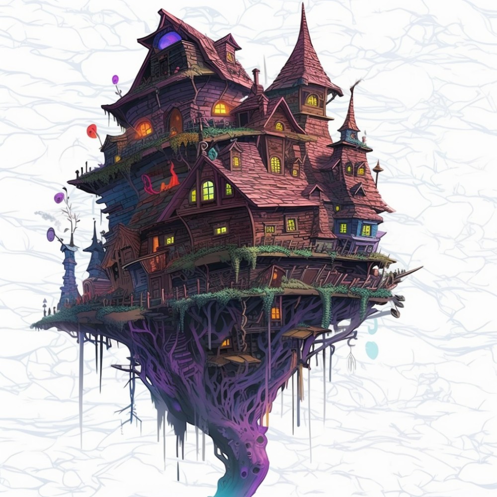 A school where you can learn to be a witch or a wizard. Located in the middle of cursed forest . The school building is standing on a gigantic chicken leg.