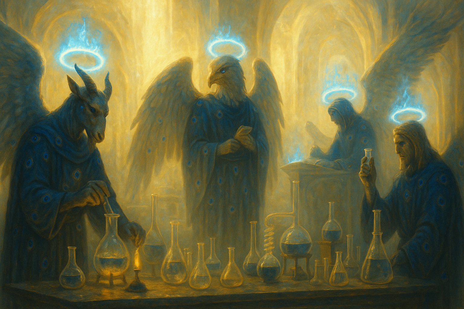 Ainsi, si les chérubins dominent l’Institut, les autres chœurs y tiennent des fonctions essentielles, transformant la Chokmah en une cité savante polyphonique, où chaque voix soutient l’édifice fragile du savoir.
