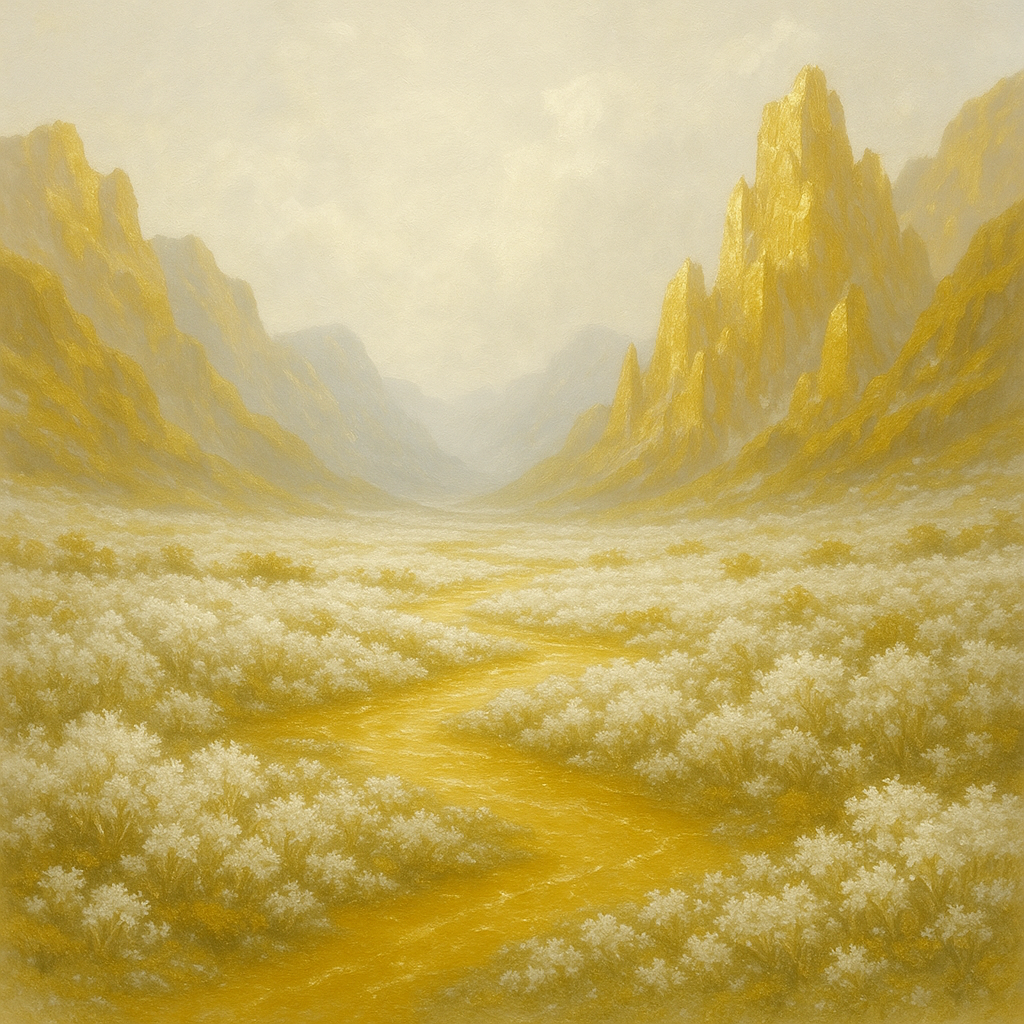 Des rivières de miel lumineux serpentent entre les plaines et les vallées cristallines. Leur flux visqueux n’est pas seulement métaphorique : il constitue une véritable énergie nutritive, capable de renforcer les séraphins et d’alimenter les forges spirituelles. Ces cours liquides sont jalousement protégés, car ils figurent parmi les ressources les plus précieuses du royaume.
