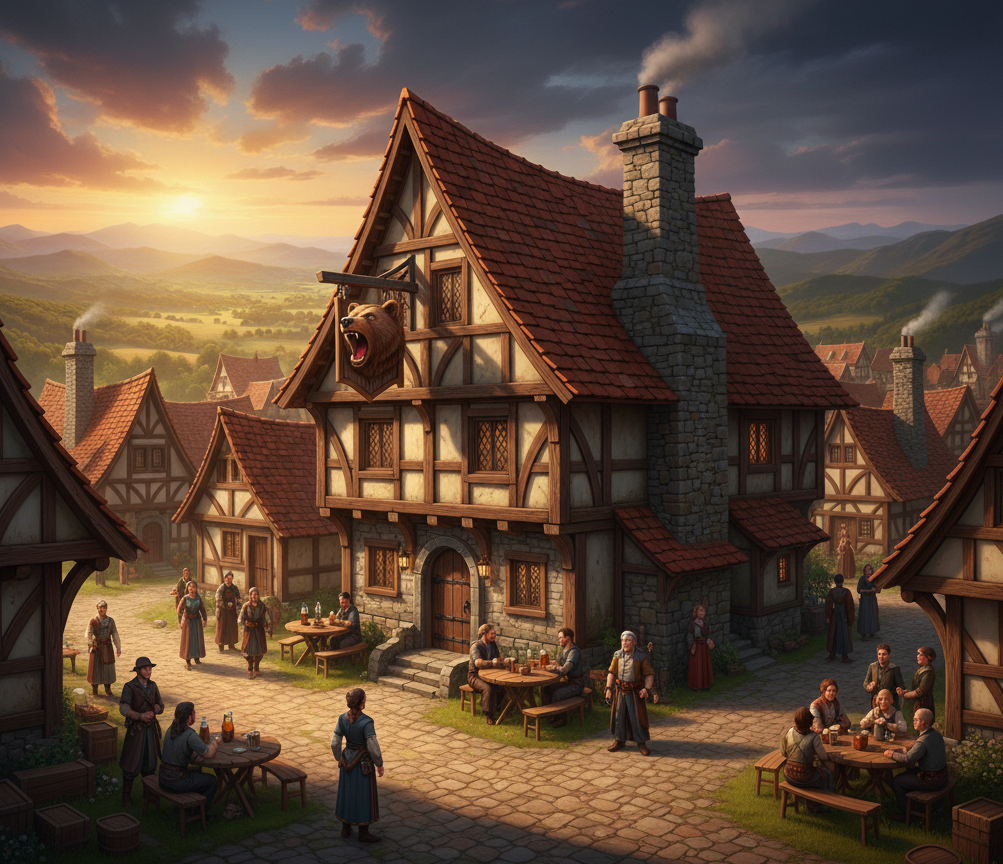 Today, Bear's Head remains a thriving hub, its economy still dominated by the timber trade from the Reaching Woods. The merchant council rules, guided by the firm but fair hand of Kira, now in her thirties. She and her husband still personally run The Bear's Head Inn, which serves as the town's unofficial hall, a place of trade negotiation, and a living monument to its strange founders. The massive, weather-beaten bear's head still hangs over the bar, a reminder that this town was carved from the wilderness by the unlikeliest of hands.