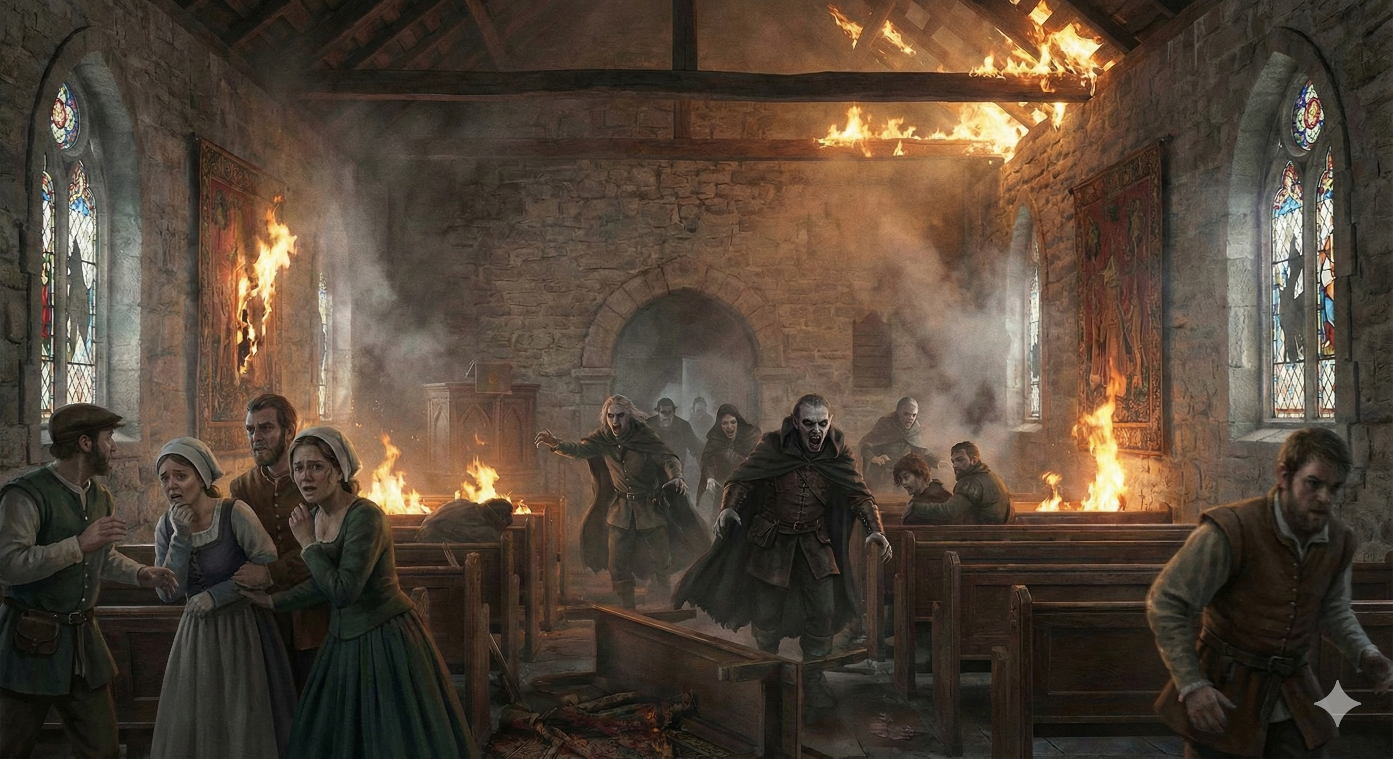 The entire interior of St. Andral’s was a swirling vortex of fire. The roof beams were ablaze, raining burning debris down into a churning pit of orange and red. The heat hit them like a physical blow, searing their eyebrows and forcing the air from their lungs.