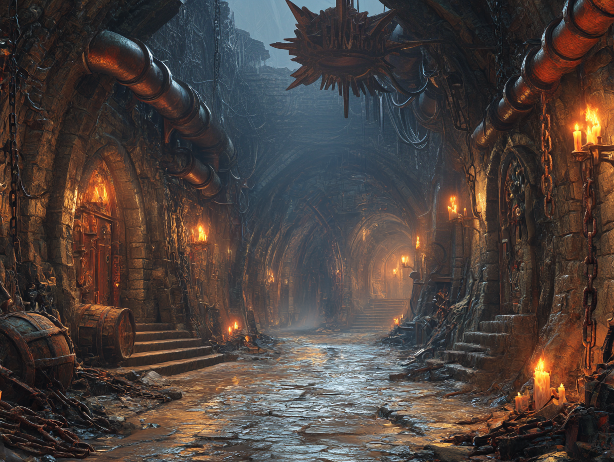 Immense lengths of chain, coils of jagged wire, giant clockwork gears, and old corrugated metal cargo containers riddled with gashes, bullet holes, and the telltale pockmarks of laser fire are piled high, forming a jagged and intimidating hill-like wall surrounding the interior.
