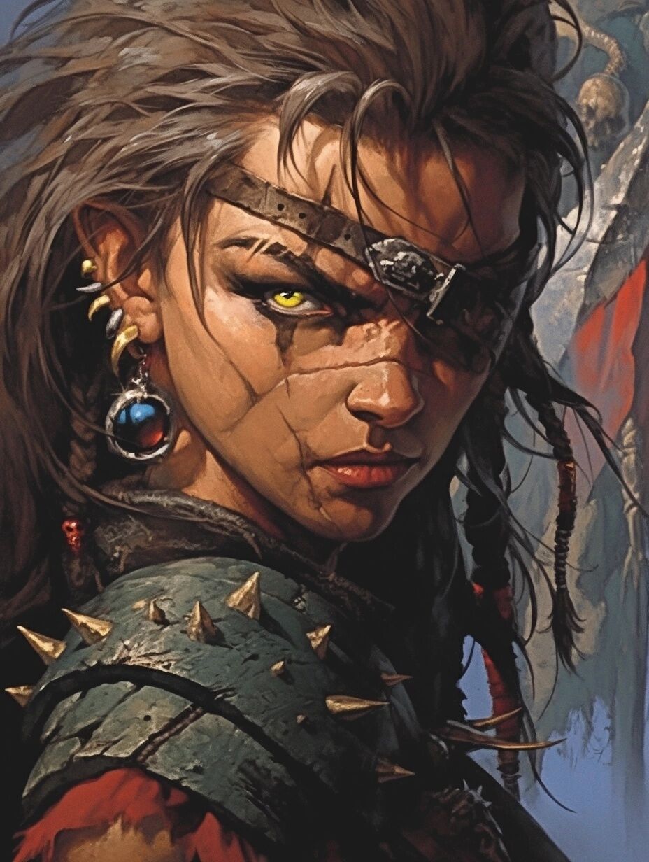 Scarred and sharp-eyed, wears one of Varagio’s old hawk pauldrons as a badge of loyalty. Keeps the “Old Code” alive among her followers.