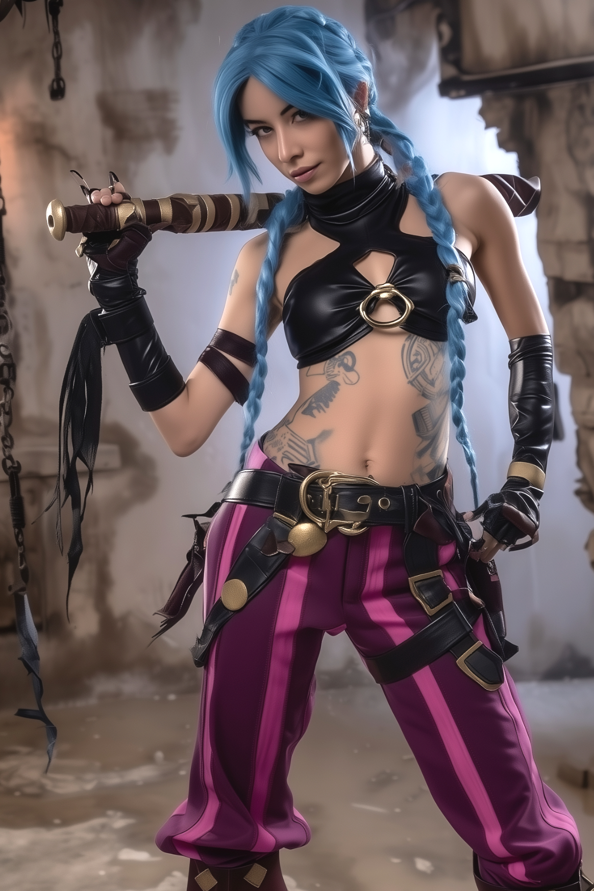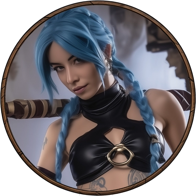 Elle est de taille moyenne, avec un corps mince et musclé, des cheveux bleus longs et tressés, des yeux bleus clairs, un teint pâle et des lèvres bleutées. Elle porte une combinaison ajustée, souvent déchirée ou customisée avec des gadgets explosifs, des gants, des ceintures à outils et des bottes renforcées.