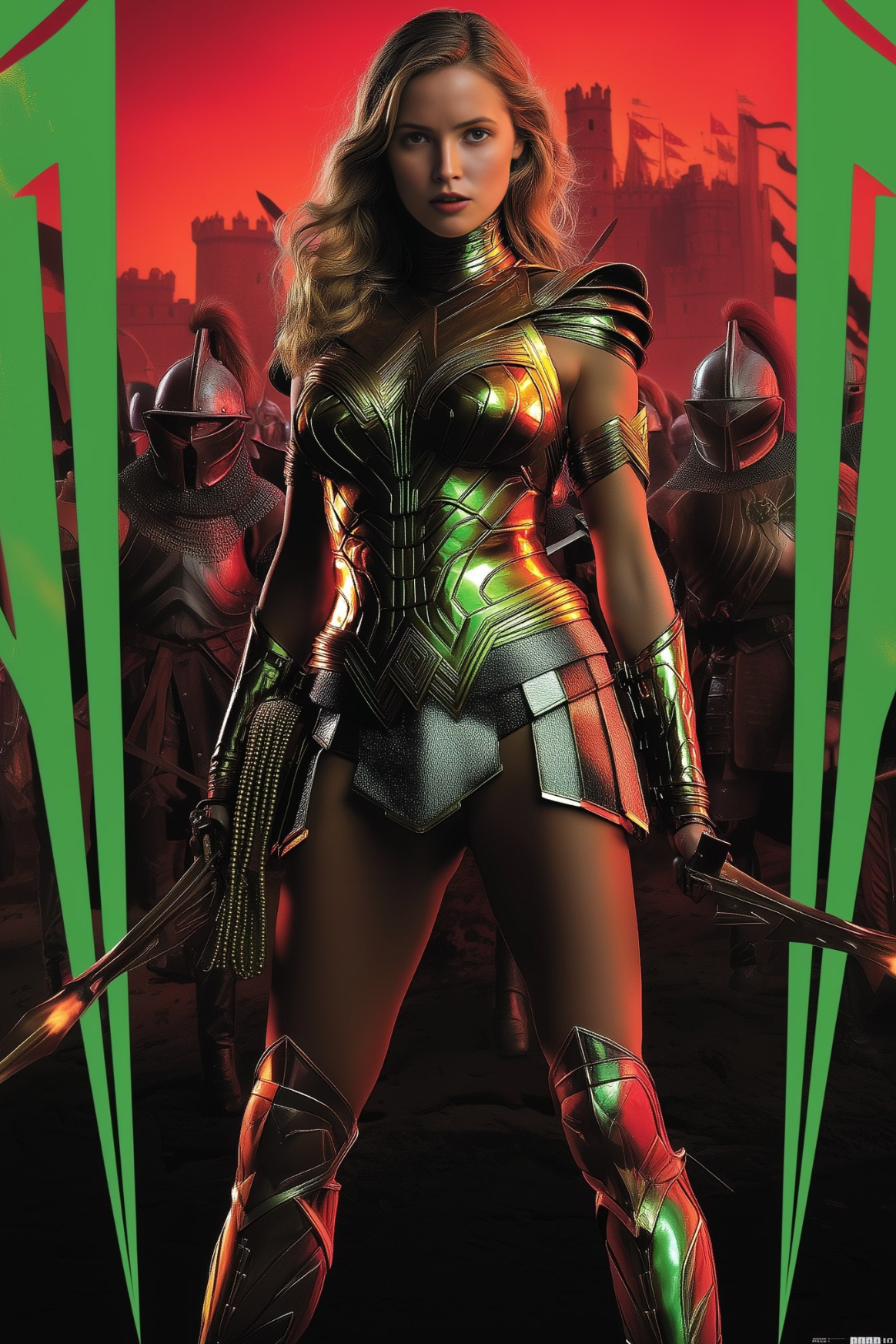 Kiara attaque, ses mouvements précis et contrôlés. Elle est à la hauteur de sa réputation. Elora, avec une agilité étonnante, bloque et esquive, répondant par des contre-attaques rapides et efficaces, parfaitement dosées. Les épées s'entrechoquent dans un fracas métallique, tandis que les deux femmes se déplacent avec une grâce mortelle.