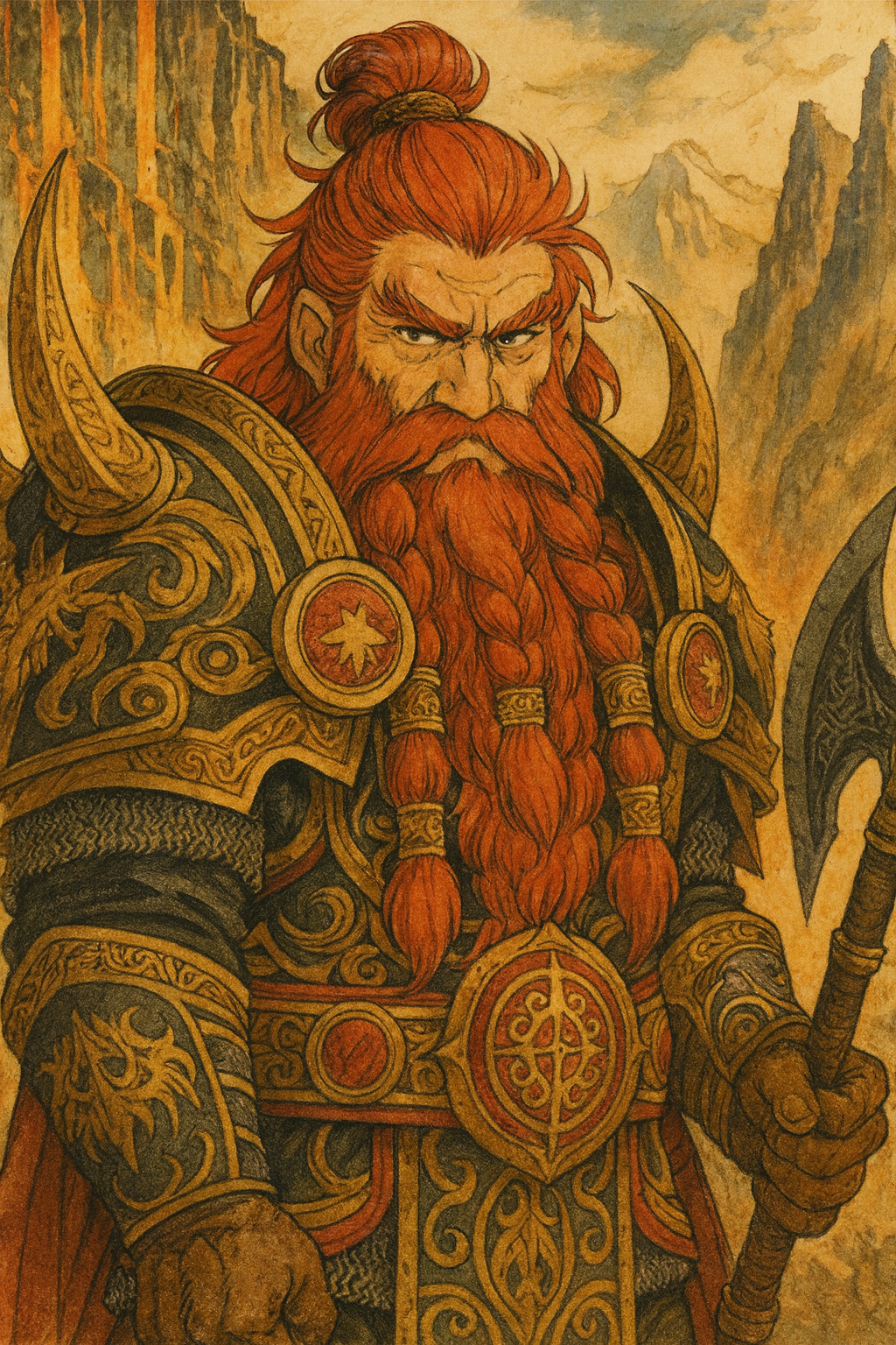 A towering figure among dwarves, with a braided beard as red as molten iron and a gaze as sharp as his twin war axes, Tharatin commands respect through both his martial prowess and his unwavering resolve. He leads his people with a vision: to reclaim The Deepforged Halls, the ancestral seat of dwarven glory lost during the Cataclysm. His campaigns into the depths are as much about restoring his people's honor as they are about rekindling their cultural pride.