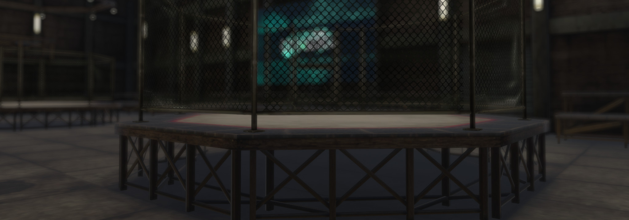The Underground Fighting Ring is a unique spot hidden inside an old, abandoned cinema building right on Sakura Street. The cinema stopped showing movies in 1991, and by 2007, the space was transformed into a gritty underground arena. Inside, two cages stand ready for fights, surrounded by wooden benches packed with spectators. Above the arena is a VIP viewing area, and huge movie screens now show the action instead of films. The place is kept surprisingly clean, stripped down to fit as many people as possible for events.