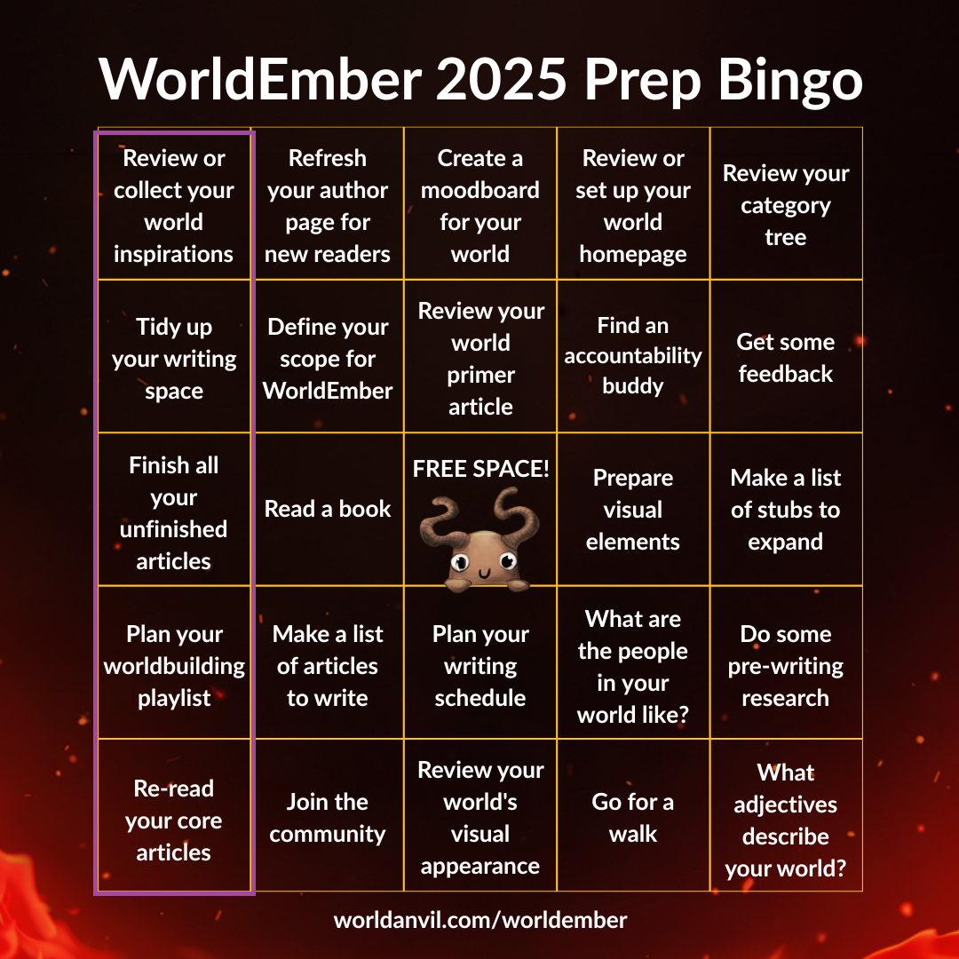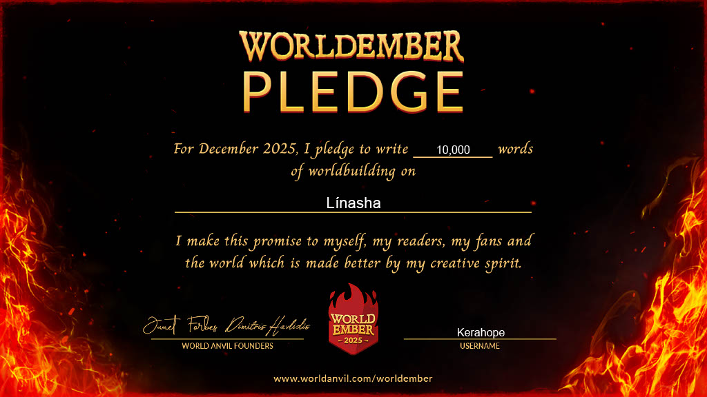 I will have to review or recollect my inspirations to start fresh. My worldbuilding is inspired by the fantasy worlds I have seen on World Anvil. My Línarsha has evolved over time as my muse has changed over time. International fantasy or World Anvil is expanding my creative inspirations. I will have to find which music, movies, games, and books are the best.