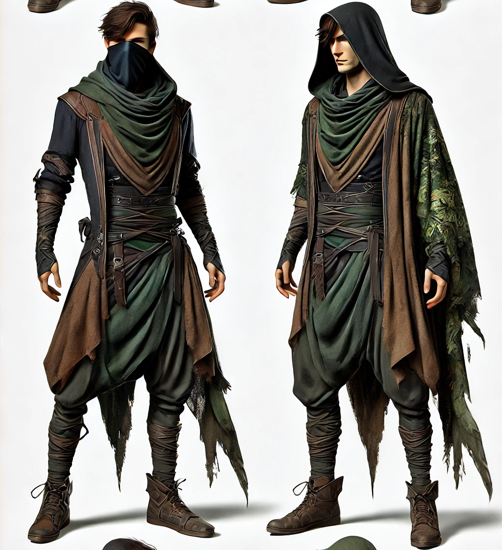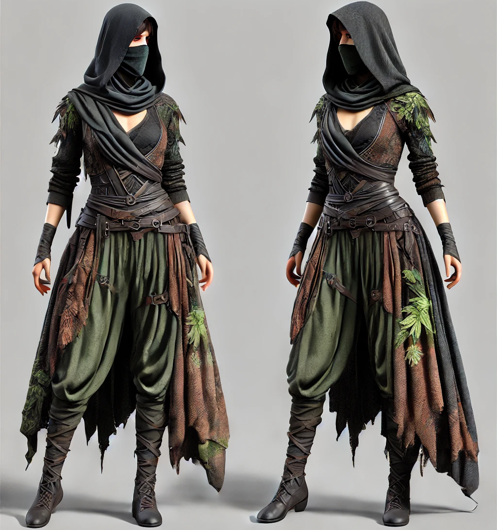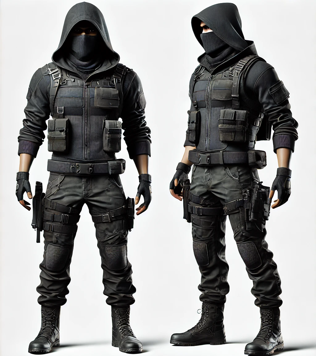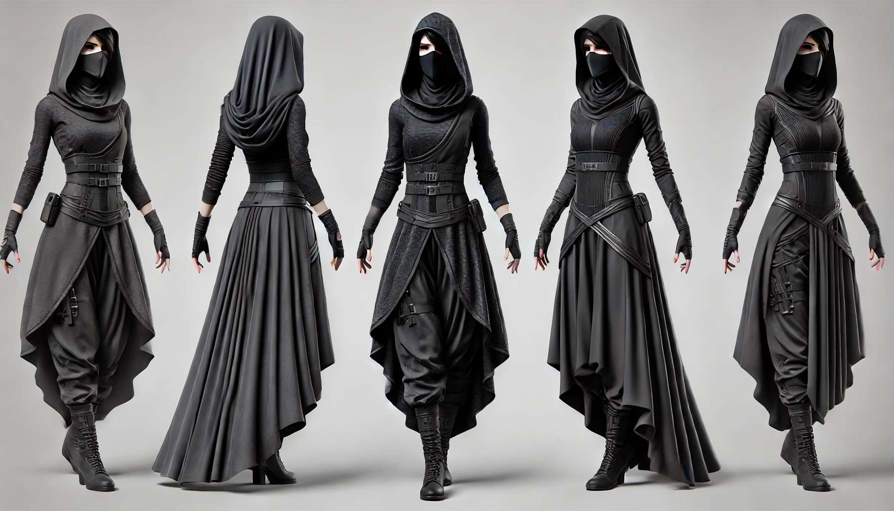 Mystoyaner kleiden sich in dunkle, flexible Kleidung, die Bewegungsfreiheit bietet und Tarnung ermöglicht. Sie tragen oft Masken oder Tücher, um ihr Gesicht zu verbergen.
