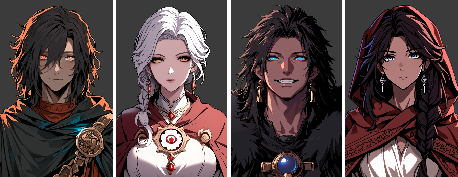 From left to right: The Lords of the Blaiddyn Clan, the Wolfhelm Clan, the Lobo Clan, and the Garou Clan.