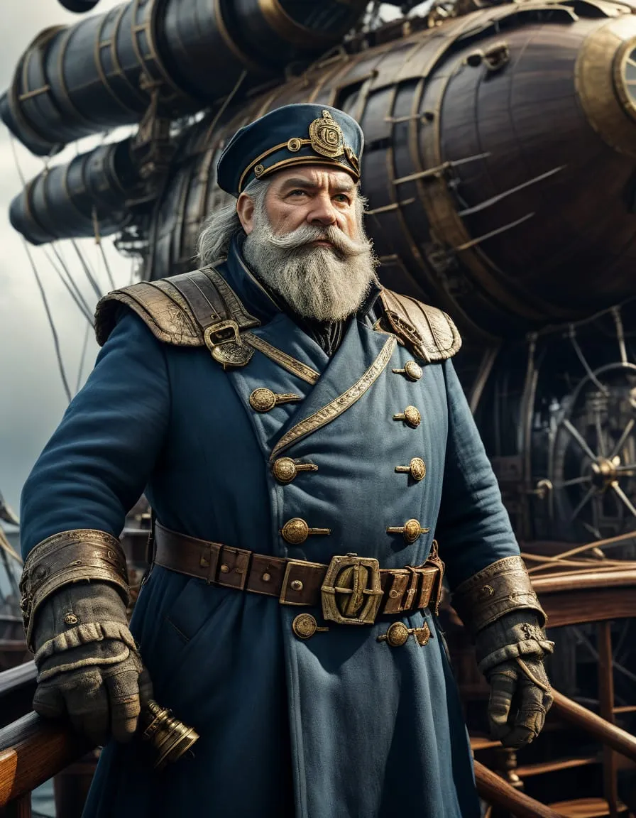 A broad-shouldered dwarf with weathered bronze skin, Lockstead’s beard is streaked with silver and neatly braided to keep it from tangling in the wind. He wears a tailored blue-and-brass naval coat reinforced with leather straps, always adorned with his admiral’s insignia. His eyes are sharp and calculating, missing little that happens on or above the battlefield.