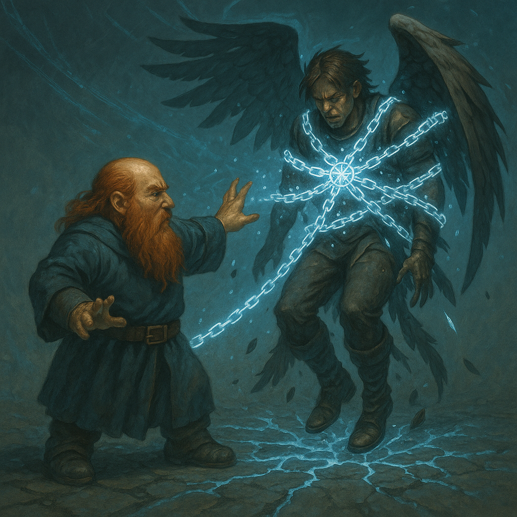 You lay a dwarven edict upon a foe, thickening the space around them. The target must succeed on a Strength saving throw or be slowed by 20 feet (to a minimum of 0), can’t take the Dash action, and cannot benefit from Disengage against you (your opportunity attacks ignore Disengage). The creature’s flying speed becomes 0; if it is flying and can’t hover, it falls.