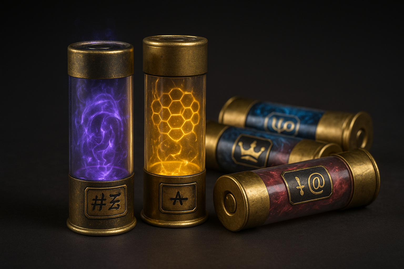 These were once nicknamed “caster shells,” but guild lawyers and imperial censors now insist on Glyphshot Cartridges (or just Glyphshots). The name changed. The nightmares didn’t.