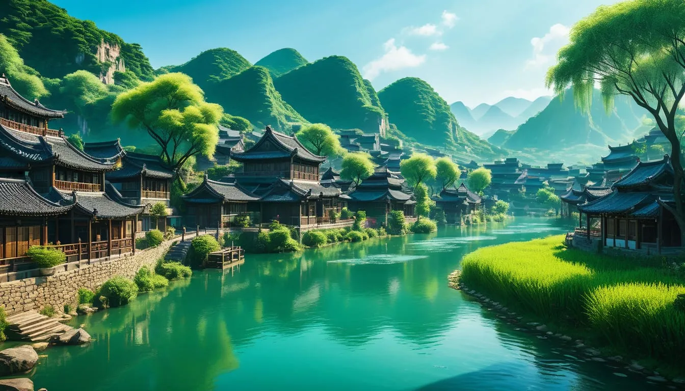 Tucked within the tranquil southern reaches of The Lin Province, Green Water Village is a picturesque settlement renowned for its crystalline springs and serene jade-hued rivers. Wooden bridges arc gracefully over gentle waterways, and traditional lanterns sway from intricately carved posts, their soft light reflecting off the ever-moving surface. The air here is always cool and carries the fresh scent of water lilies and moss.