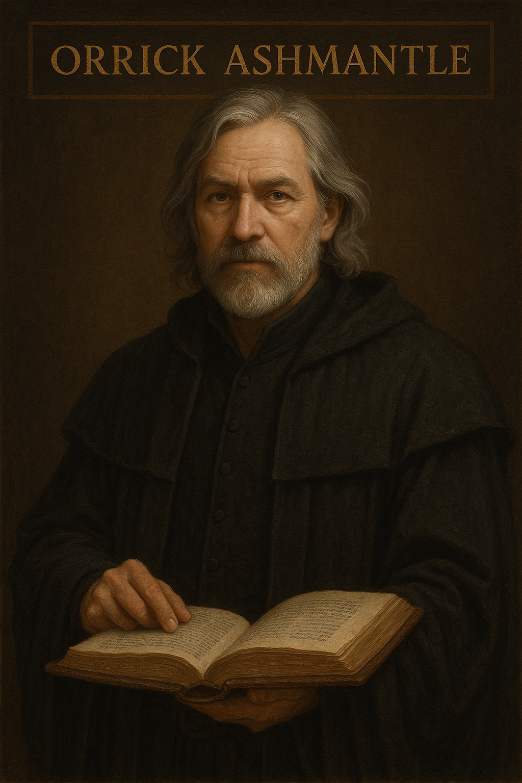 Orrick Ashmantle is one of the eldest surviving voices of the Undying, a man whose life has become inseparable from the cinders of knowledge he guards. His mantle, blackened at the edges as though forever brushed by fire, hangs heavy across his shoulders; it is said he wove it himself from the ashes of burned tomes to remind all that wisdom must be preserved or be lost to flame. His eyes gleam with ember-light, reflecting both age and the sharp clarity of a mind unbroken by time.