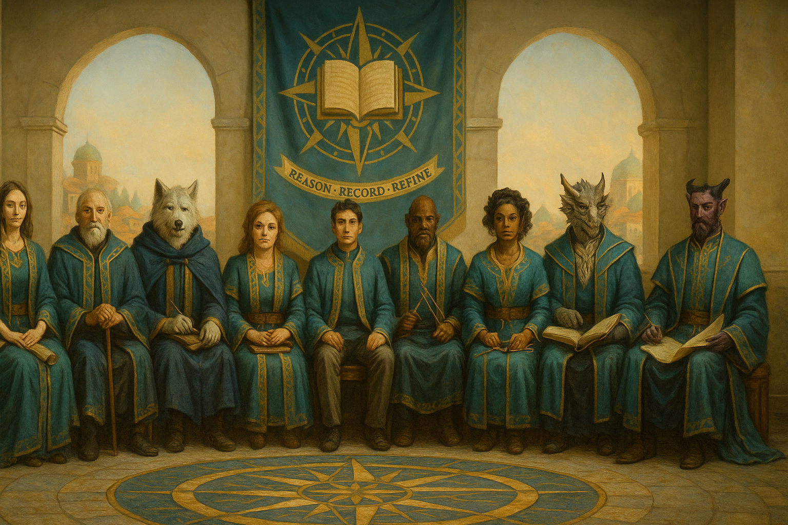 | Symbol | Open codex over a wind‑rose; motto ribbon: “Reason, Record, Refine” |