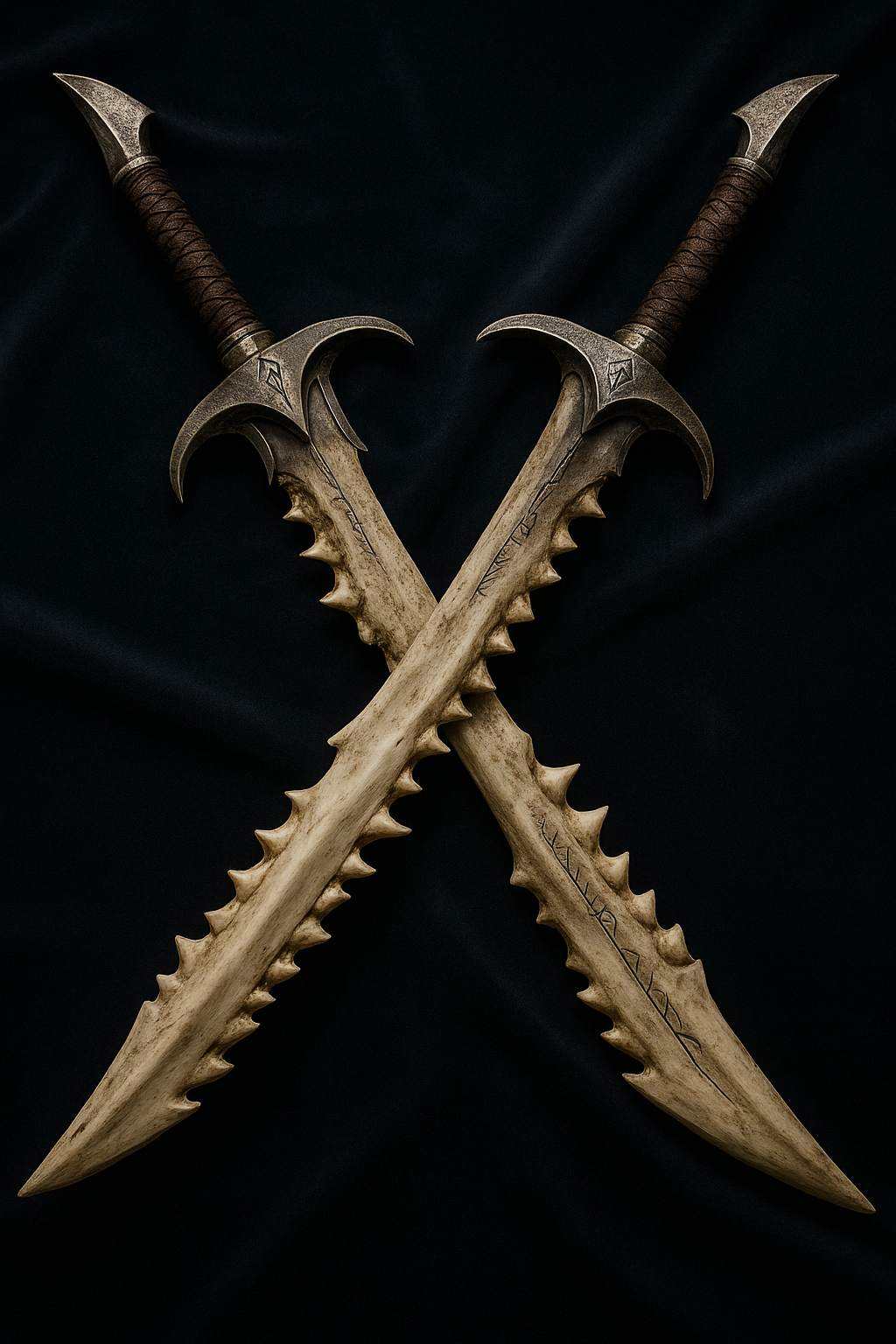 Ripping Jaws – If the wielder scores critical hits with both blades against the same target in a single turn, the jaws close as one: the target suffers an additional 8d8 damage as bone teeth tear through flesh and armor.