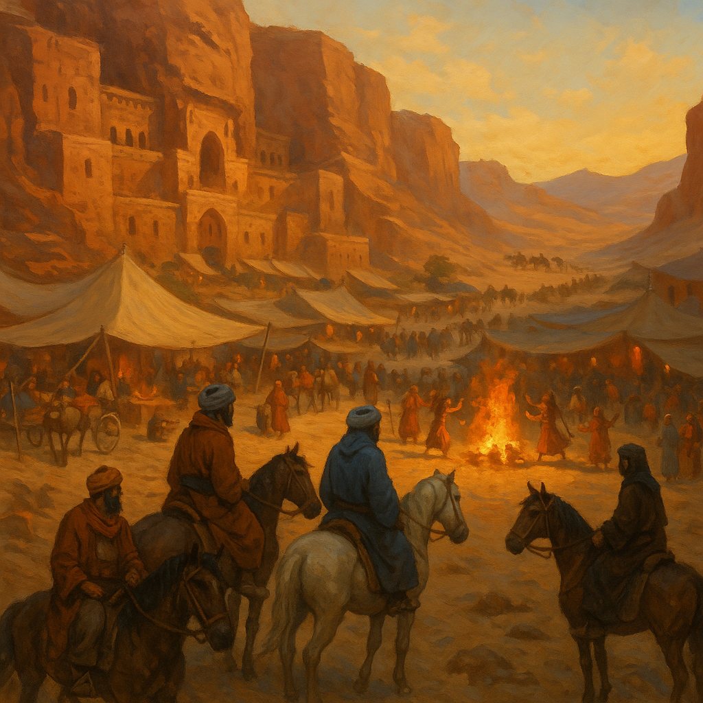Merchants open their caravans, turning the canyon city into a grand bazaar of the south, where foreign emissaries barter for rare spices and horses.
