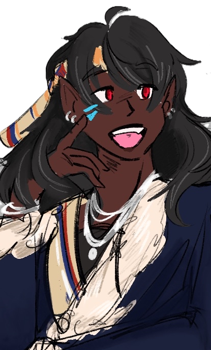 A strange merchant who has recently sailed up the river and made a home for themselves floating in Loch Ouritz, Miu-Nabarabe (or Nabe for short) is an eccentric figure who claims to be from the land Sariopede. Where they are or aren't from - what's certain is their collection of foreign fineries and skill for haggling.