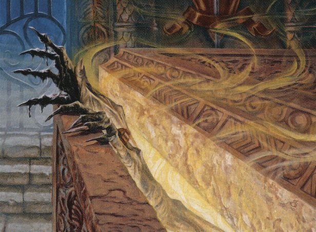 Ambrose, yelling in pain, manages to get his left hand free from under his body (the other still held tight in the jaws of the mummified cat), and reaches out, grabbing onto the cat's face and channeling a sacred flame into the cat. It works, burning the undead so fiercely that whatever force was animating it is burned away and it collapses on top of him. Ambrose pushes the now-still corpse off of him and stands up, wincing and holding his bleeding arm.