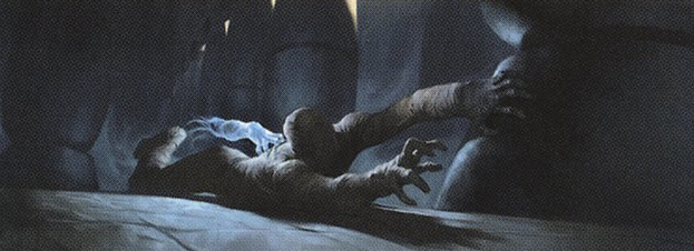The party now exits the embalming room and after Foenix unlocks it, enter into a room with a series of four cots with moth-eaten linens sit, each one with a chest at the feet of the bed. Each one contains a series of robes, but also personal items.
