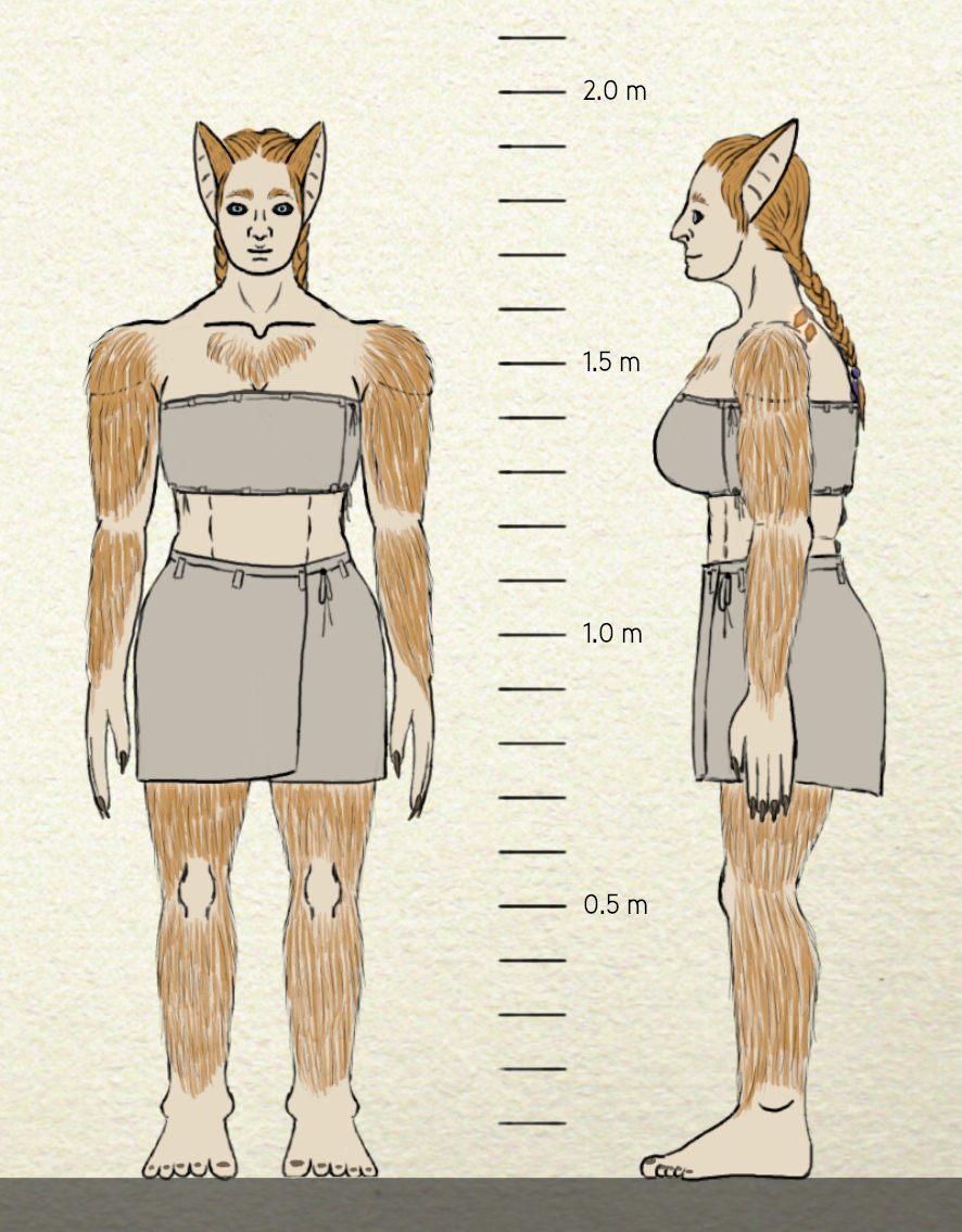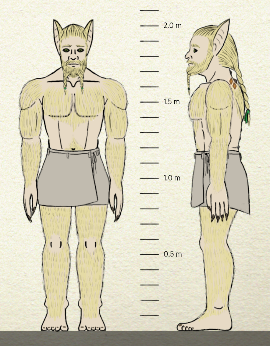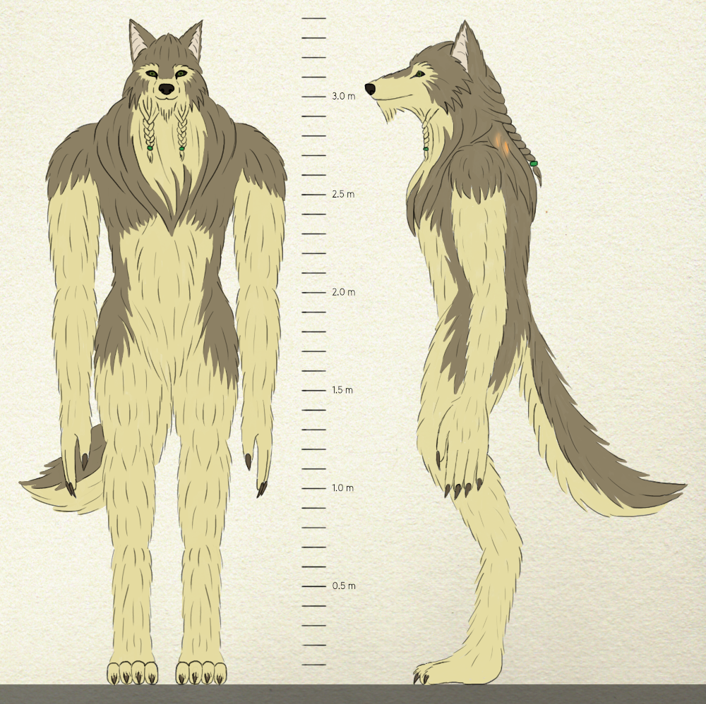 As for clothing, werewolves wrap their bodies in large pieces of fabric that are held together by ornate belts. These are easily taken off or adjusted in fit after a person changes their form.