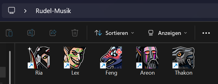 I have playlists for the members of Ria's Pack on my PC. A folder on my desktop contains links to those files, marked with portraits so that I can identify them at a glance.